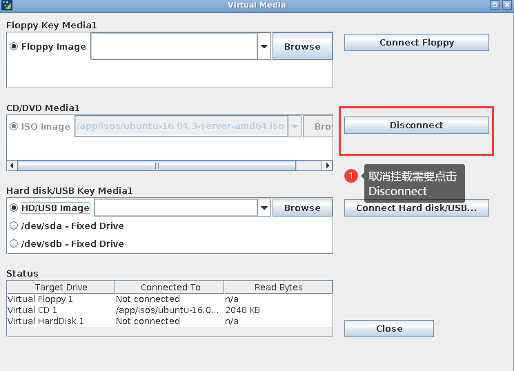 1: To cancel the ISO mount, you can choose Disconnect