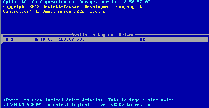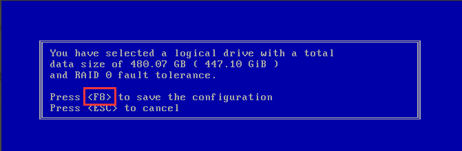 view logical drive :check raid delete logical drive:enter selected raid that need to delete, pressF8, thenF3 to delete raid After set up raid can press esc to exit |